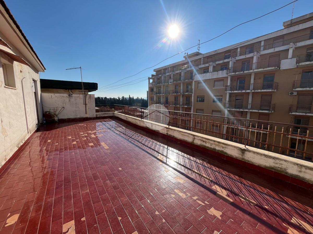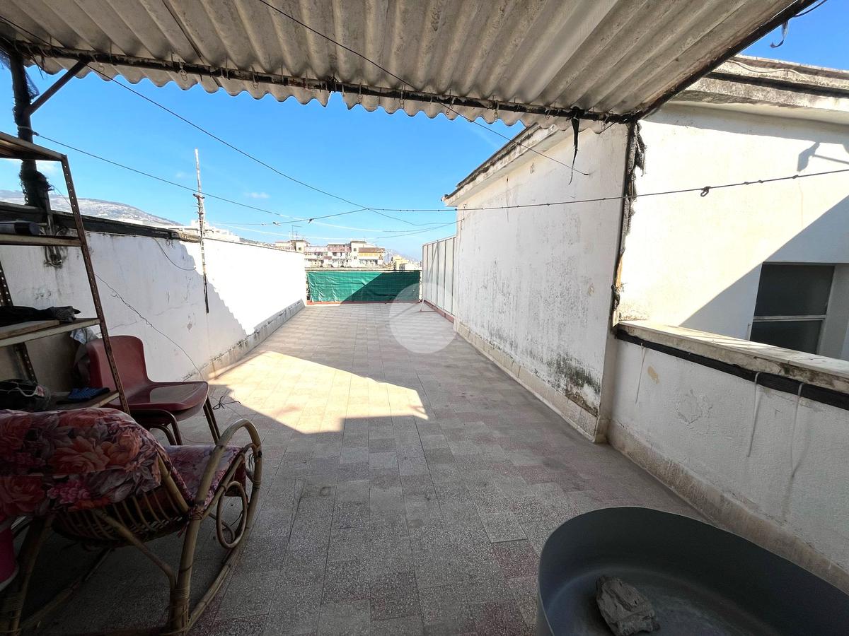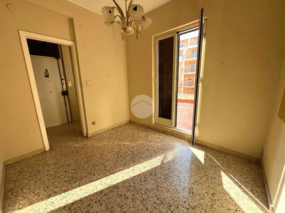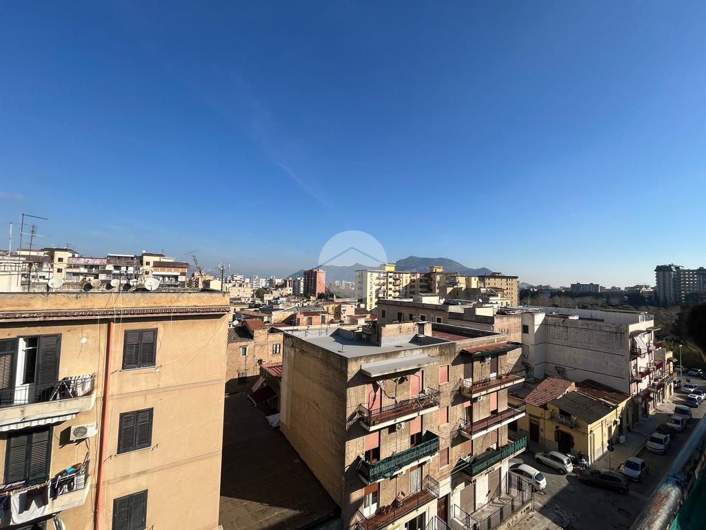 L'interno dell'appartamento è composto da un ingresso con disimpegno, un soggiorno e una camera da letto con accesso al terrazzo principale di 44 mq, cucina non abitabile con cucinotto, servizio finestrato con vasca, un ripostiglio e altre due camere da letto, una delle quali con accesso al secondo terrazzo di 40 mq.