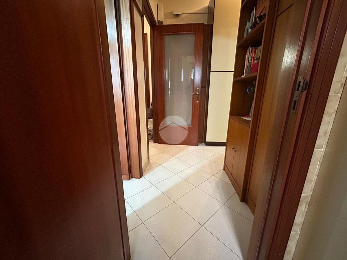 L’ingresso si apre su un disimpegno che conduce ai vari ambienti della casa. La zona giorno è composta da un ampio salone, luminoso e accogliente, cucina con balcone verandato, ideale come spazio di servizio o lavanderia e da un servizio igienico. Un piccolo corridoio disimpegna la zona giorno e conduce a due camere da letto di buona metratura. Completa la proprietà una cantina di pertinenza e un posto auto condominiale.
