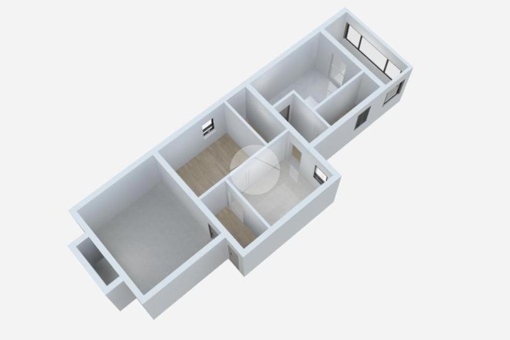 L’immobile, luminoso e ben distribuito, si apre su un comodo ingresso che conduce agli ambienti della casa. La zona giorno è composta da un soggiorno luminoso e da una cucina abitabile con veranda annessa, utile come spazio multifunzionale o lavanderia. La zona notte comprende due camere e un servizio. La distribuzione degli spazi risulta funzionale e adatta a una gestione locativa semplice ed efficace.